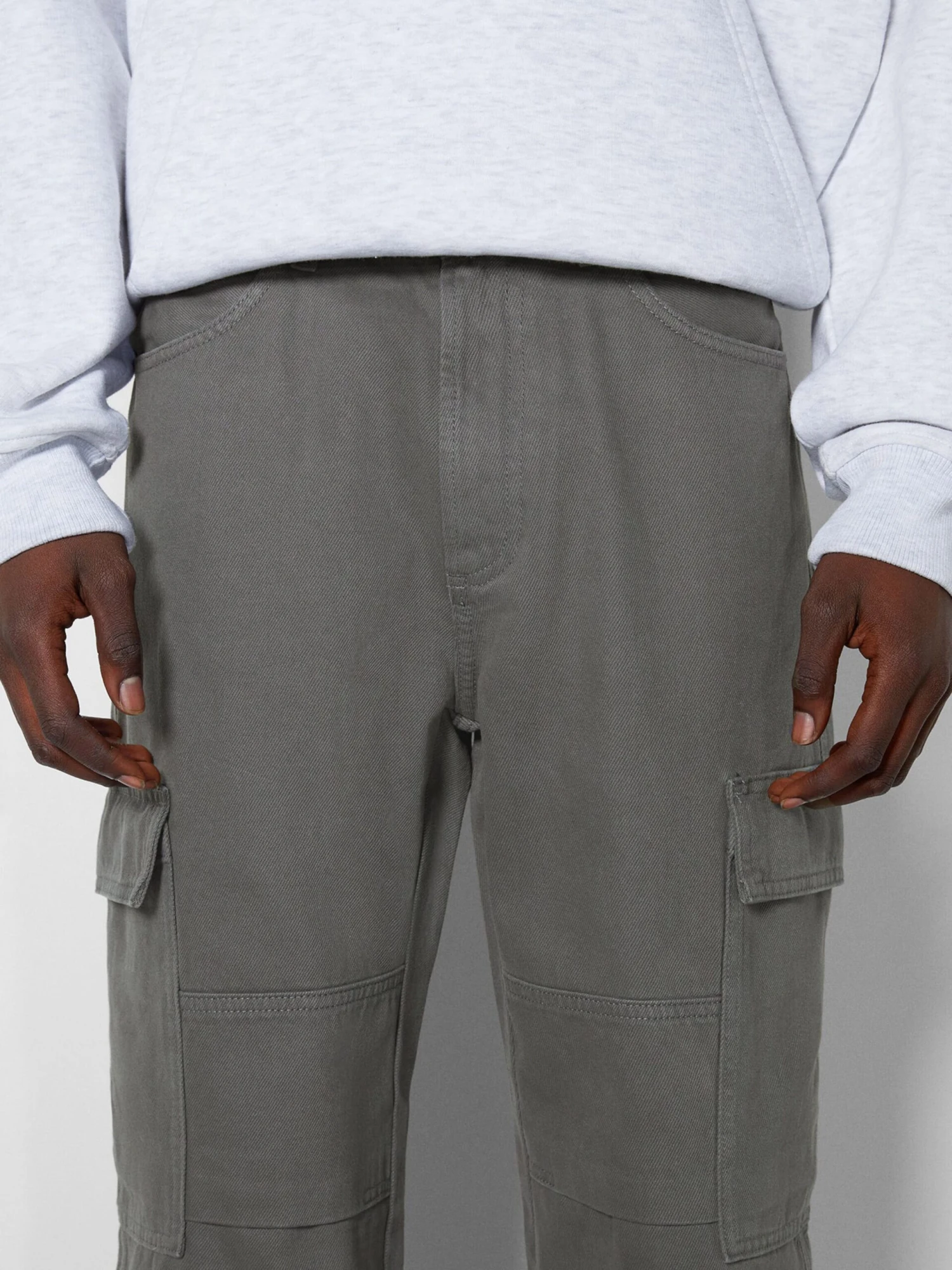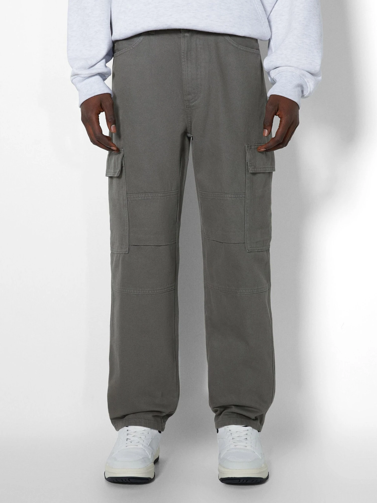 BERSHKA Loose Fit Loosefit Jeans Cargo Homme Gris